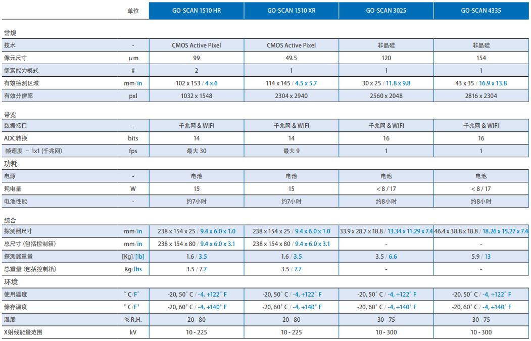 GO-SCAN 數(shù)字平板探測器技術參數(shù)